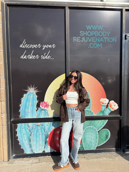 Elevate your style with this Brown Pleather Jacket, designed to combine edgy fashion and everyday comfort. Its rich brown hue adds warmth to any outfit, while the durable pleather material offers a sleek, leather-like look without the weight. Perfect for layering, this jacket enhances your wardrobe with a versatile, trend-forward piece that stands out in any season. Whether heading out for a casual day or a night on the town, this jacket delivers a confident, polished finish to your look.