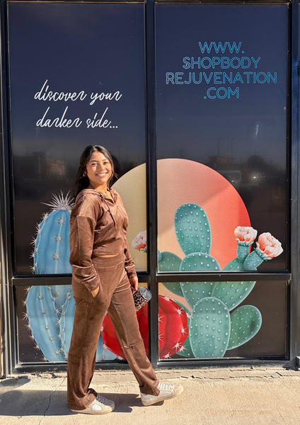 Embrace effortless style with our Mocha Y2K Tracksuit, the ultimate blend of comfort and contemporary fashion. This luxurious two-piece set features a sumptuous velvet hooded jacket with a full zipper for easy layering, paired with relaxed straight-leg lounge pants complete with a drawstring waist. Perfect for lounging at home, running errands, or making a fashion statement, this tracksuit delivers that coveted cozy-chic aesthetic. The rich mocha tone complements any complexion while the soft velvet fabric feels indulgent against your skin. Transition seamlessly from day to night without sacrificing comfort or style.